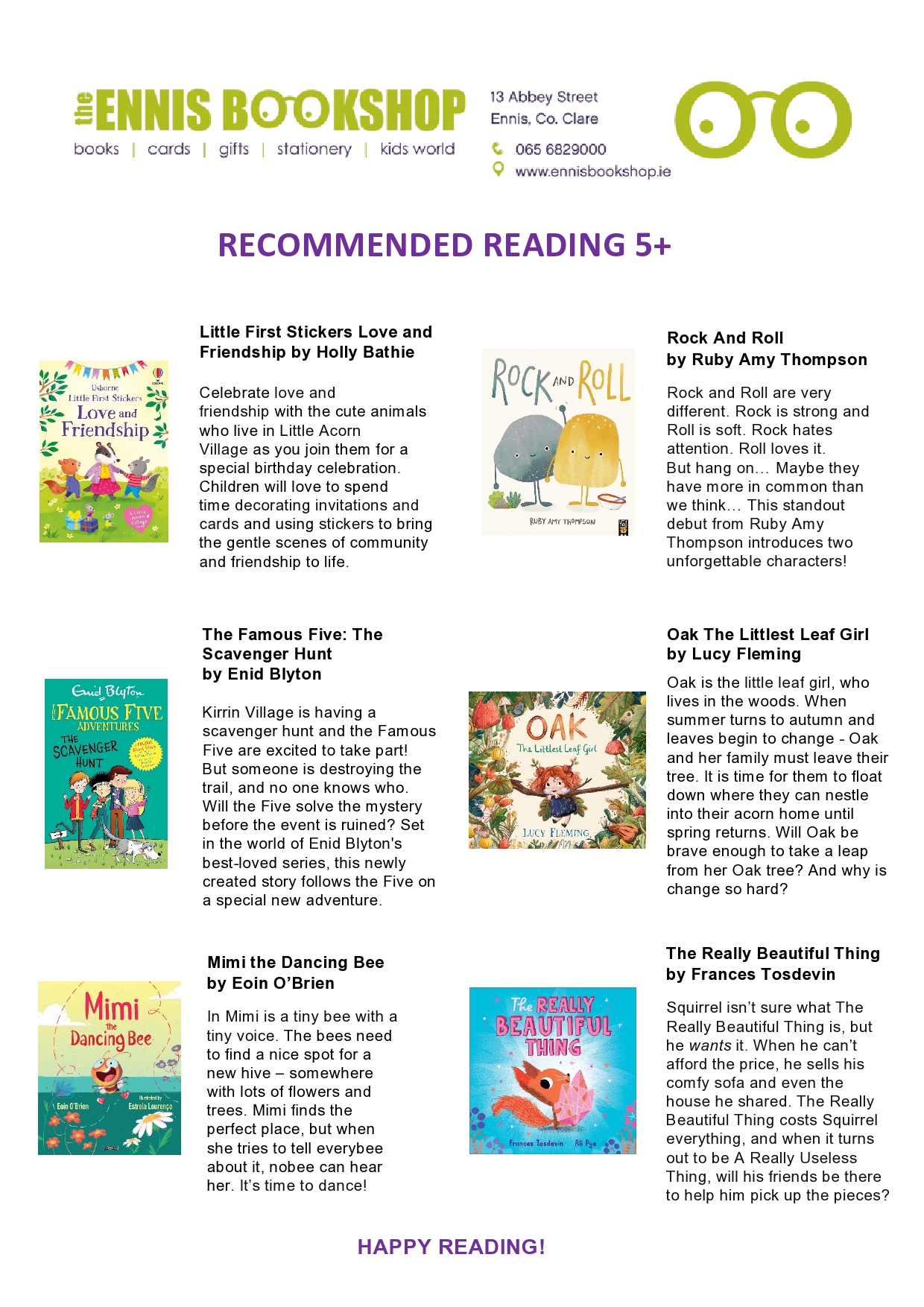 Book of the Month and Recommended Reading Lists from Ennis Bookshop
