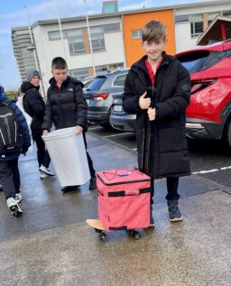Our Fifth Classes took on a fun challenge today: “Bring everything you need for school… but NOT in a backpack!”