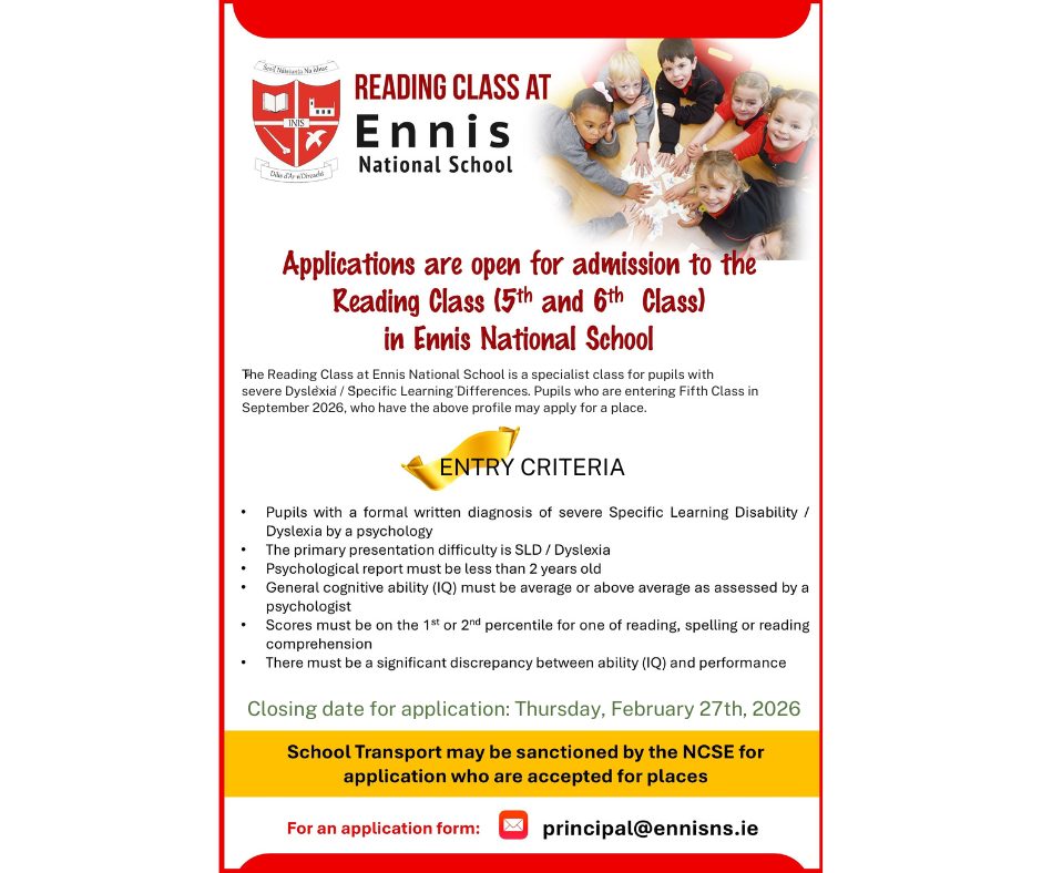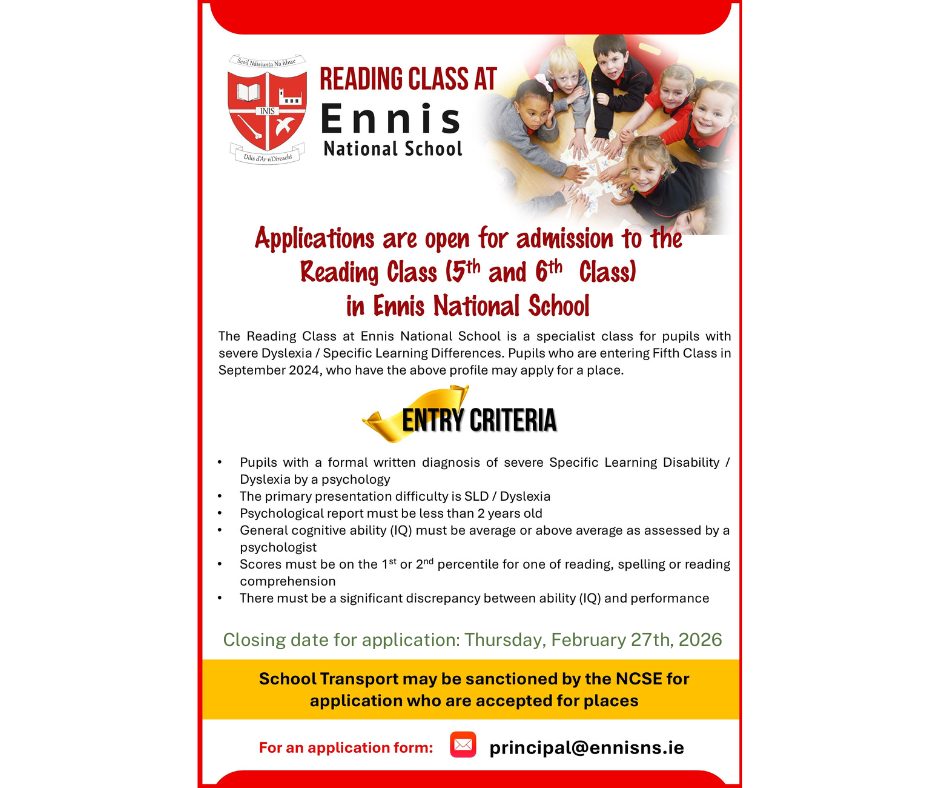 Enrolment Applications for the Reading Class at Ennis National School