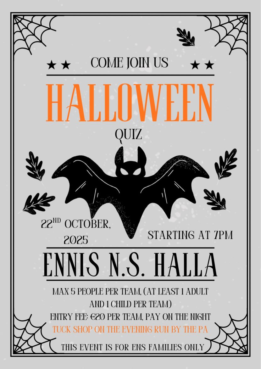 Our annual Halloween Quiz will take place on Wednesday Oct 22nd starting at 7pm in the school hall.