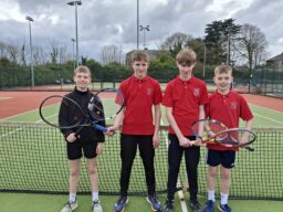Well done to our boys tennis team of Oisin, Hugh, Robbie and Finn who played an epic 2-2 draw against Carraig NS from Nenagh. They are now safely through to the last 16 of the Munster Primary Schools Boys Competition. 🎾🎾🎾