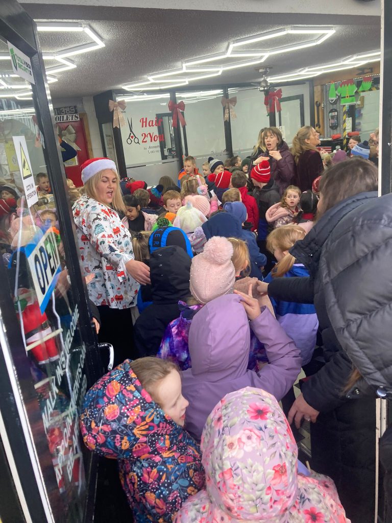 On Monday Junior and Senior infants walked to Franks Barber Shop to post letters to Santa. Sharon told us how Santa comes in to her for a breard trim!! What an exciting morning and a kickstart to our Christmas season. Thank you Sharon and Frank.