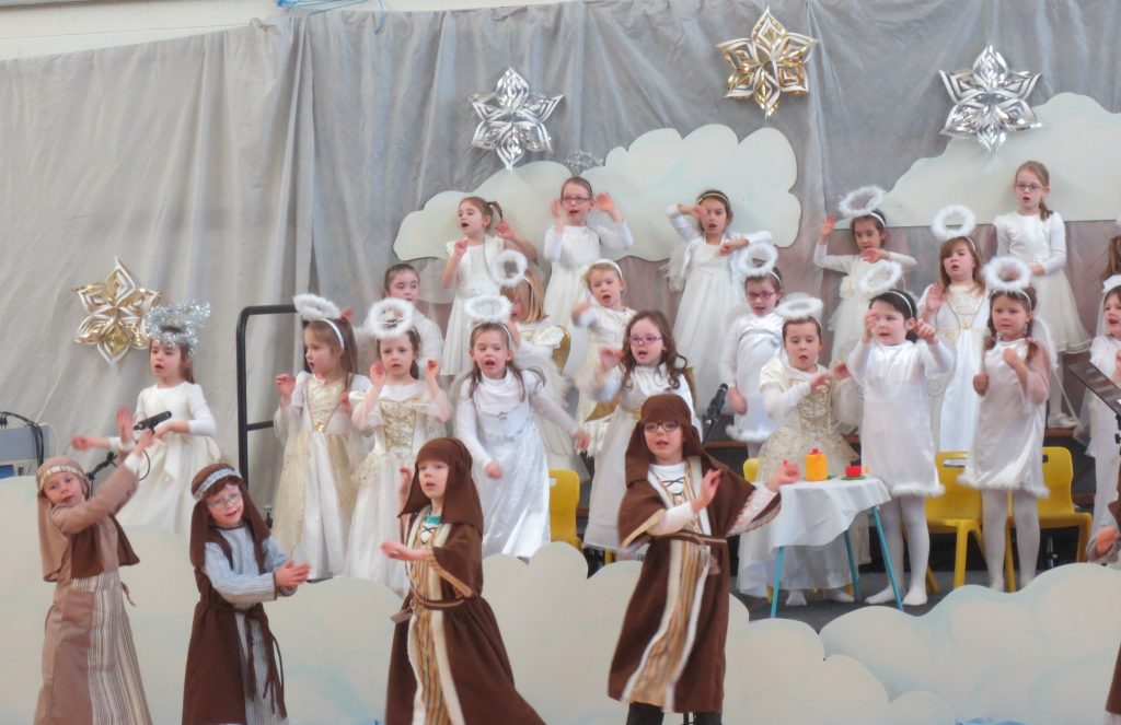 This morning was typical with the Senior Infants production of “Angel Express”. The full Dress Rehearsal started in mid-morning after break and the junior pupils “played a blinder” for an appreciative audience of Staff and Senior pupils. The wonderful recitation and acting, the beautiful melodies sung by the participants, the lovely costumes and background all fused together to make for a great show.