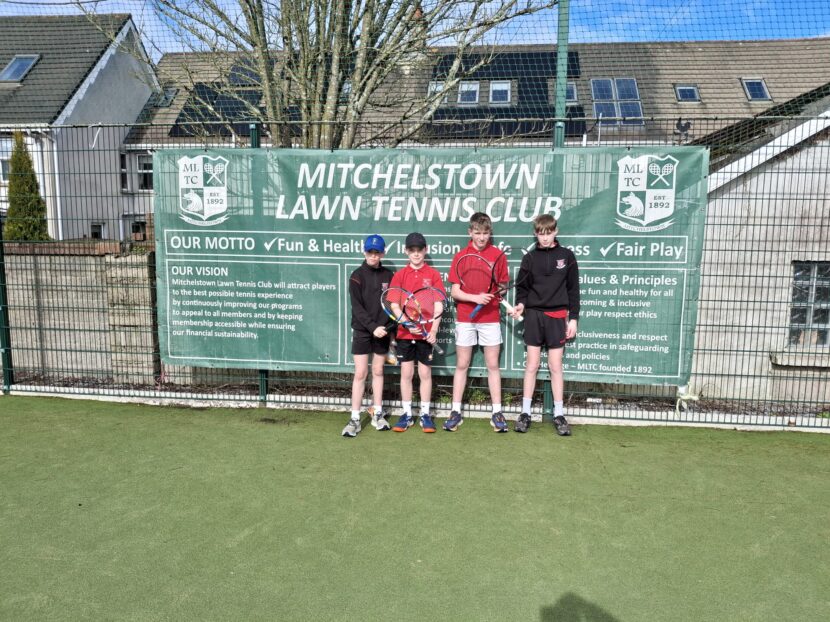 Well done to our boys tennis team of Oisin, Finn, Hugh and Robbie who got the win today in their first game of the Munster Boys Primary School Tennis Competition. Big thanks to @cbs_primary Mitchelstown for the hospitality at Mitchelstown Tennis Club.